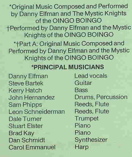Credits for "The Forbidden Zone", the first film that Danny Elfman ever scored.