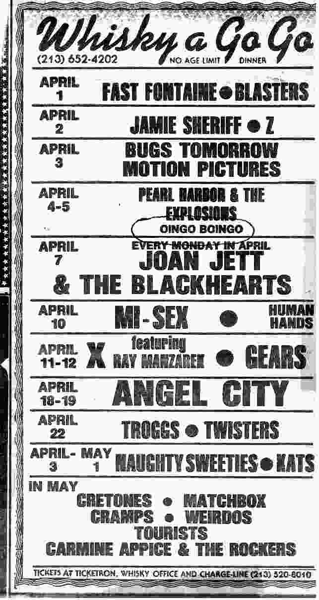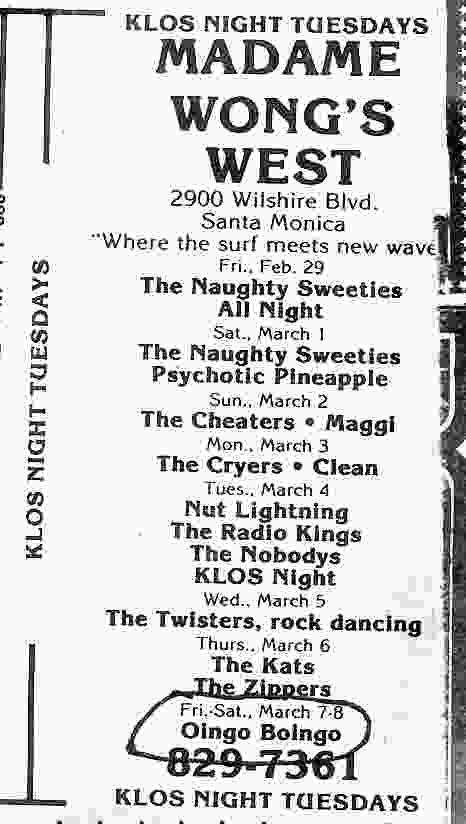 The Live Action Chart from February 1980. Oingo Boingo and the Motels were not as popular as the Naughty Sweeties.